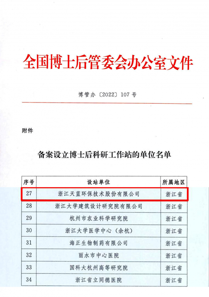 天藍環(huán)保以團隊建設(shè)為根本,擁有一支專業(yè)的研發(fā)團隊,在技術(shù)研發(fā)、知識產(chǎn)權(quán)、產(chǎn)業(yè)創(chuàng)新等方面位于行業(yè)領(lǐng)先地位。公司建有國家級博士后科研工作站、浙江省工業(yè)鍋爐爐窯煙氣污染控制工程技術(shù)研究中心、浙江省省級企業(yè)研究院、浙江省省級高新技術(shù)企業(yè)研發(fā)中心等多個科研平臺,擁有浙江省燃煤工業(yè)鍋爐爐窯煙氣污染控制技術(shù)創(chuàng)新團隊。榮獲浙江省科學技術(shù)進步獎一等獎(3項)、教育部科學技術(shù)進步獎一等獎、中國環(huán)境保護產(chǎn)業(yè)協(xié)會環(huán)境技術(shù)進步一等獎、中國專利獎優(yōu)秀獎等榮譽。